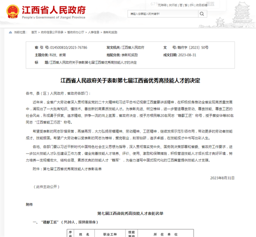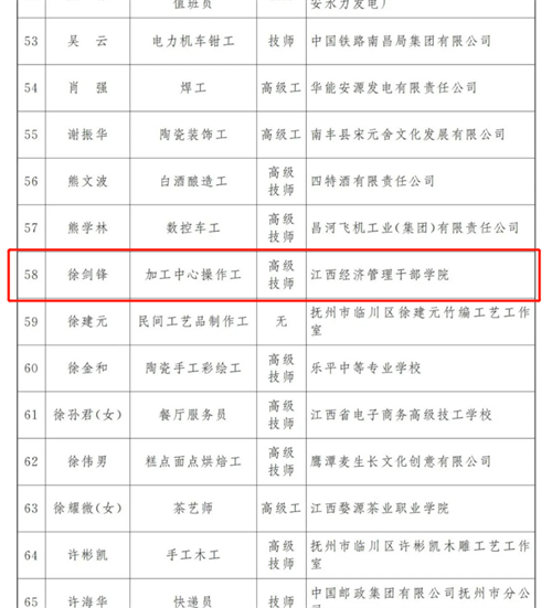近日,从《江西省人民政府关于表彰第七届江西省优秀高技能人才的决定》文件获悉,学校飞行技术学院副院长(主持工作)徐剑锋被省政府授予“江西省能工巧匠”称号。