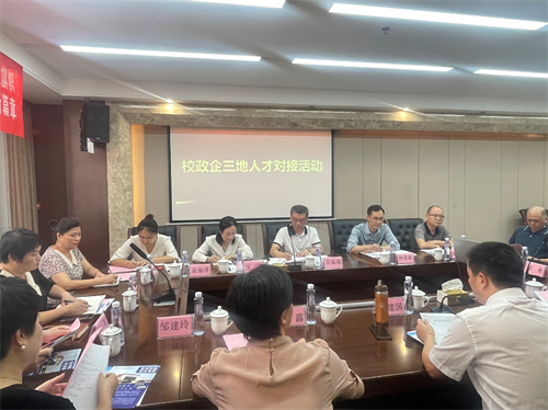 会上,校政企三方围绕人才培养、实习实践、校企合作、大学生就业指导等方面开展座谈交流。吴建国介绍了参会企业基本情况,希望通过搭建校企双选平台,助力企业和毕业生双向奔赴。学校招生就业处处长钟圣泳介绍了学校就业情况和人才优势。各企业负责人逐一介绍了企业对人才的诉求和建议,希望今后能更全面、更深入与院校交流,帮助企业引进优秀专业人才,共同推动校政企合作走深走实。