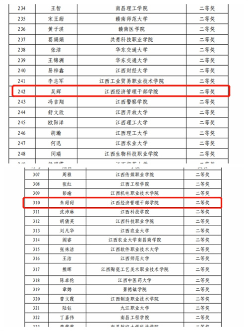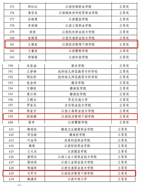 在全省大学生“思政课,我想对你说”征文活动中,电子与信息工程学院计算机网络技术221班吴辉、工商管理学院市场营销221班朱甜甜分别荣获二等奖,航空运动学院酒店管理与数字化运营221班王雅茹、工商管理学院民航安全技术管理221班胡雨珊、机场学院工程造价211班毛军宇分别荣获三等奖。