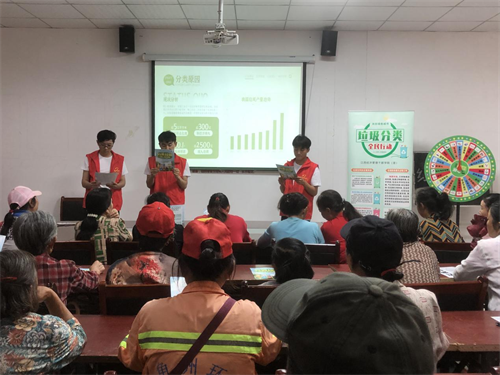 志愿服务队成员围绕为何要进行垃圾分类、垃圾种类和分类原则等内容进行讲解,组织居民观看垃圾分类宣传片,分发了垃圾分类宣传单。在户外开展了垃圾分类有奖答题互动,引导居民们把垃圾分类知识融入日常,提高了居民们“保护环境,人人有责”的责任意识。