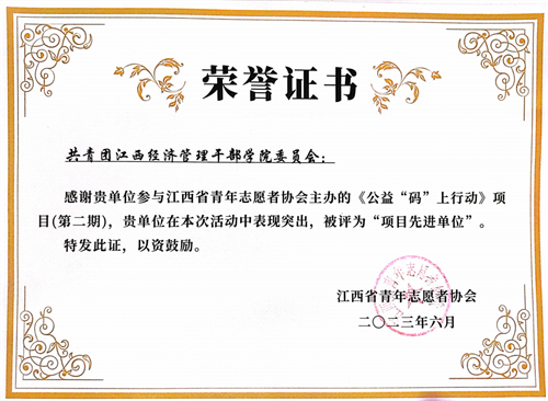 近日,学校参与江西省青年志愿者协会主办的公益“码”上行动项目(第二期),被评为“项目先进单位”。