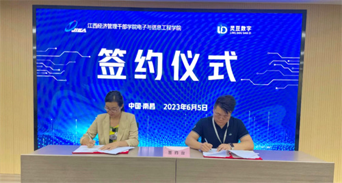 座谈会后,电子与信息工程学院与灵豆数字签署实习就业基地合作协议,并举行“实习就业基地”授牌仪式。