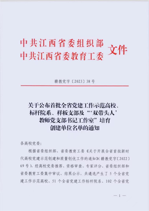近日,全省首批新时代高校党建示范创建和质量创优培育创建单位名单公布。此次参评面向全省高校,共遴选产生了5个全省党建工作示范高校、51个全省党建工作标杆院系、102个全省党建工作样板支部。其中,学校文法学院党总支入选为“全省党建工作标杆院系”,获省委教育工委专项资助。