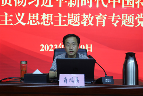 5月9日,党委委员、副校长肖鸿晶为分管联系党支部全体党员讲授题为“学习贯彻习近平新时代中国特色社会主义思想 推动学校创飞科研高质量发展”的专题党课。