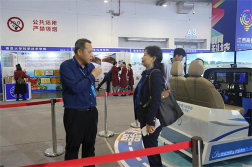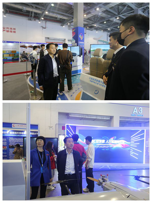 4月14-15日,江西高校第四届科技成果对接会在南昌绿地国际博览中心举行,学校以“创建中的江西飞行学院”为主题亮相成果对接会。校党委书记秦夏明,党委委员、副校长肖鸿晶到场参观指导。