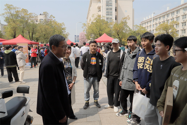 此次普法宣传活动,校党委书记潘晓华、校长秦夏明、副校长吴猛强亲临现场,与来校各单位及师生共同参与互动。
