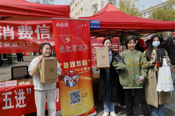 为弘扬诚信、公平、法治的良好消费环境,引导大学生科学、合理消费,强化维权意识,保障合法权益,在第41个“3·15”国际消费者权益日即将到来之际,3月7日,江西经济管理干部学院、江西省消保委、江西日报、江盐集团围绕“牢记消费忠告 提振消费信心”主题,在校园内联合开展形式多样的宣传活动。