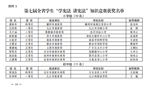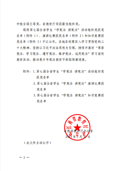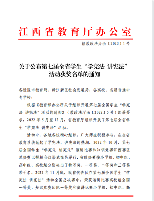 近日,江西省教育厅公布了第七届全省学生“学宪法 讲宪法”活动获奖名单。我校学生黄凌云同学获“学宪法 讲宪法”演讲比赛三等奖(指导教师:程炉);周李晨同学获“学宪法 讲宪法”知识竞赛三等奖(指导教师:应斌)。
