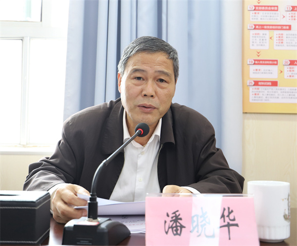潘晓华强调,学好党章就是要尊崇党章,做一名合格的共产党员。广大党员要把党章作为案头书,学习党章原文,熟悉党章的总纲和条文,掌握党章的主要内容、基本观点、重要要求,以党章为镜不断用党章给思想灵魂“洗尘”,以党章为“营养剂”不断用党章给理想信念“补钙”,以党章为标尺不断用党章给纪律观念“上弦”。一要不断用党的创新理论武装头脑,深学深悟习近平新时代中国特色社会主义思想,及时跟进学习习近平总书记重要讲话和重要指示批示精神,深刻领悟“两个确立”的决定性意义,在思想上政治上行动上同以习近平同志为核心的党中央保持高度一致,不断增强“四个意识”、坚定“四个自信”、做到“两个维护”。二要深入学习党史,掌握并弘扬以伟大建党精神为源头的中国共产党人精神谱系,牢记“三个务必”,增强为党的事业不懈奋斗的内生动力,时刻保持昂扬向上的精神风貌。三要树牢共产主义远大理想,深刻认识和全面把握新时代新征程中国共产党的使命任务,牢记空谈误国、实干兴邦的要求,心怀“国之大者”,时刻以奋斗者的姿态扛起落实立德树人根本任务,为建设教育强国、科技强国、人才强国奉献自己的智慧和力量。四要强化组织观念和纪律观念,时刻自重、自省、自警、自励,养成纪律自觉,不踩红线,不破底线,做干干净净的人、坦坦荡荡的人、有良心道德的人、勤政廉洁的人。
