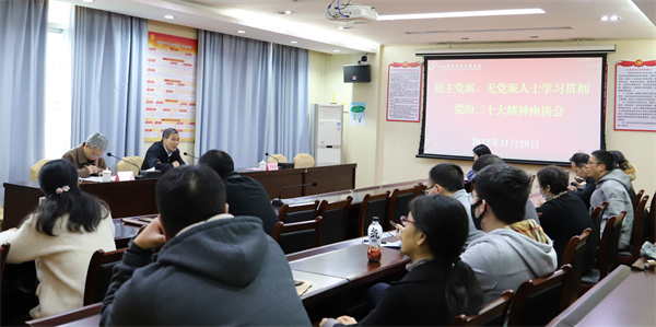 11月29日上午,学校在行政楼四楼会议室召开民主党派、无党派人士学习贯彻党的二十大精神座谈会。校党委书记潘晓华出席会议并讲话。党委统战部负责同志,学校民主党派、无党派人士参加座谈会。