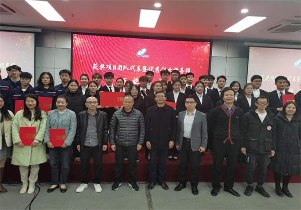 双创活动节闭幕式举行了隆重的颁奖仪式,颁奖嘉宾与获奖项目团队合影留念。闭幕式上,获得一等奖的项目团队代表和指导老师上台发表了获奖感言,大赛赞助单位天津“晨星衡祥”科技有限公司江西分公司总经理赫扎特对学校大赛的成功举办表示祝贺,并期望与学校就双创大赛开展更多的合作。