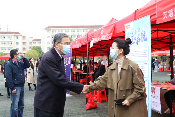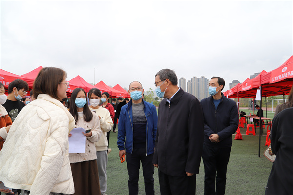为认真贯彻落实党中央、国务院“六稳”“六保”决策部署和上级相关部门的工作要求,切实为我校2023届毕业生做好就业服务工作,全力促进毕业生更加充分更高质量就业,11月19日上午,2023届毕业生双选会在田径运动场举行。学校党委书记潘晓华,党委副书记、校长秦夏明,党委委员、副校长熊运儿等校领导共同深入活动现场,了解用人单位招聘和毕业生应聘情况。