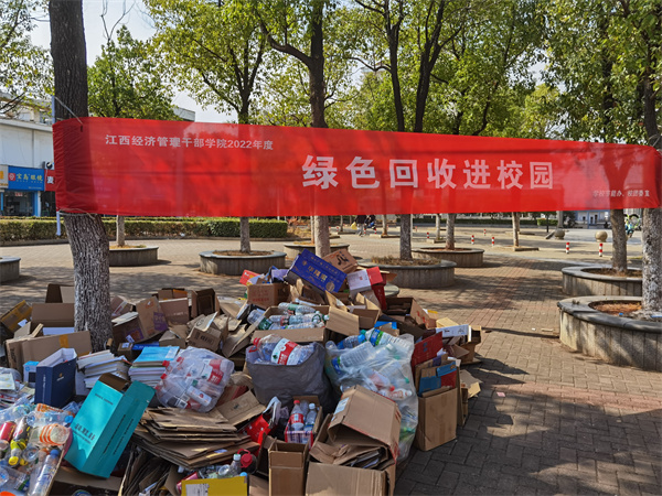 活动现场人头攒动,师生员工纷纷拿出废旧物品参与回收兑换。此次废旧物回收包括废弃的电子产品、塑料制品、废纸、旧电池等,对回收的废品将进行“定点投放,统一收集”,特别是有害的废旧电池、硒鼓等将交由专业公司进行无害化处理。参与活动的师生将废旧物品按分类进行准确投放后,即可根据回收数量兑换各类精致的绿色盆栽。至活动结束,共收集废旧硒鼓22个,废旧小家电16件,废旧纸壳、书籍300余斤,塑料瓶子2000个,已全部交由专业公司进行环保处理。