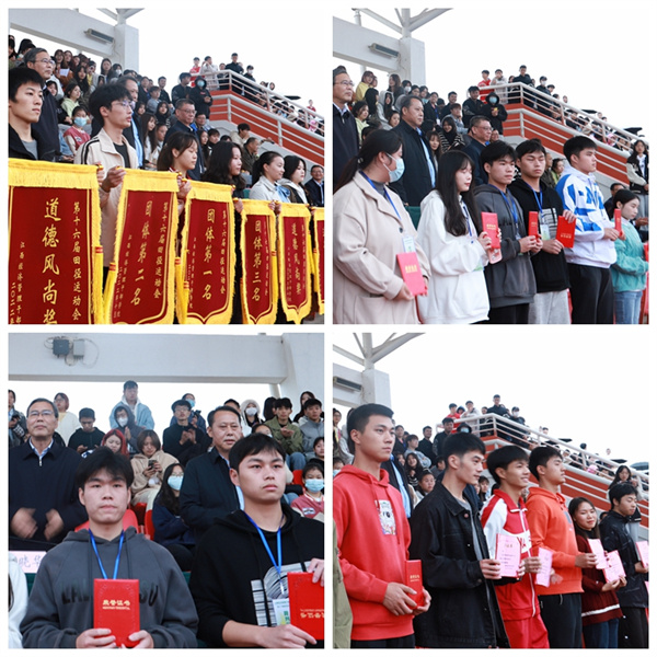 经过两天的激烈角逐,学校十六届运动会于28日下午4时顺利闭幕。闭幕式上,学校领导分别为获奖集体和个人颁奖。党委书记潘晓华宣布运动会圆满结束。