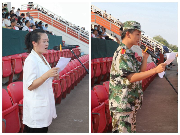 典礼在雄壮激昂的国歌声中拉开了序幕,为庆祝新中国成立73周年,两千余名新生挥舞着国旗,齐唱《强军战歌》,“请党放心、强国有我”的青春誓言在田径场久久回荡,展现出经管学子良好的精神风貌和蓬勃的青春力量。