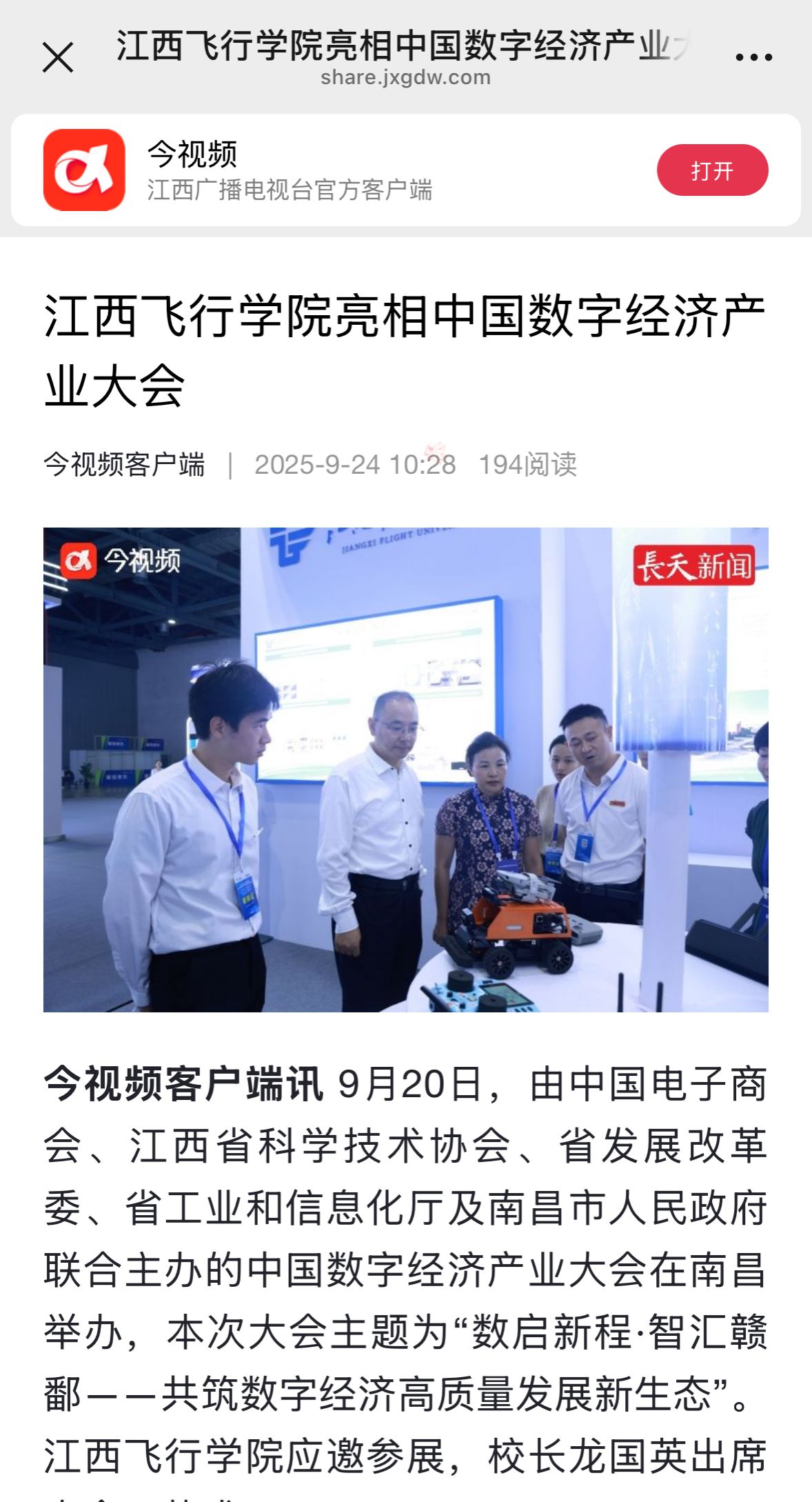 近日,今视频报道,江西飞行学院亮相中国数字经济产业大会详情如下: