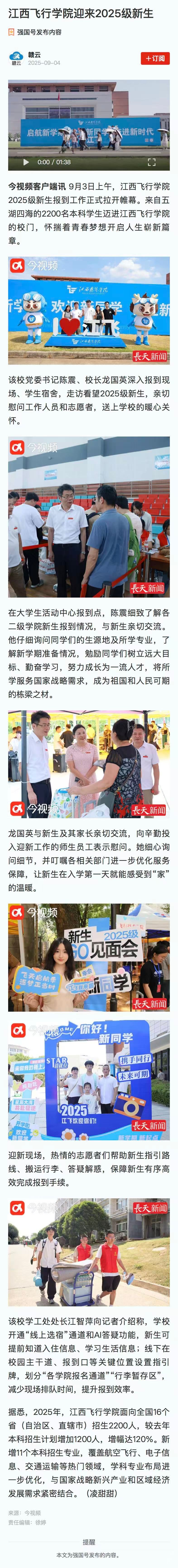 近日,学习强国报道,江西飞行学院迎来2025级新生详情如下: