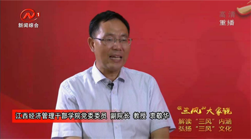 近日,学院党委委员、副院长衷敬华副院长做客南昌电视台《“三风”大家说》栏目,解读“三风”内涵,弘扬“三风”文化。