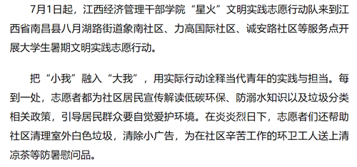 近期,多家媒体报道学院大学生暑期文明实践志愿行动——在社会课堂中受教育长才干,详情如下: