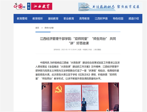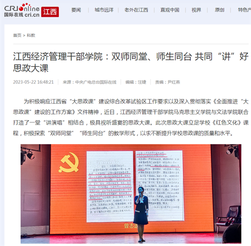 近日,多家媒体报道,学校积极探索“双师同堂”“师生同台”教学形式,打造了一堂“讲演唱”相结合,极具视听盛宴的思政大课。详情如下: