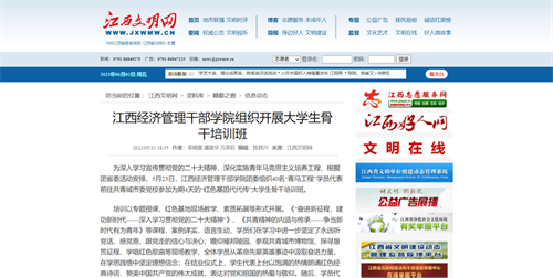 近日,多家媒体报道,学校团委组织40名学员代表前往共青城市委党校参加为期4天的大学生骨干培训班。详情如下: