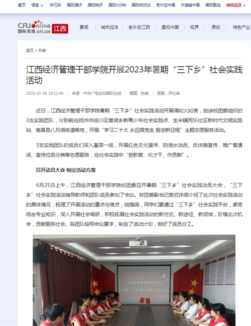 近日,多家媒体报道,学校组织开展2023年暑期“三下乡”社会实践活动。详情如下: