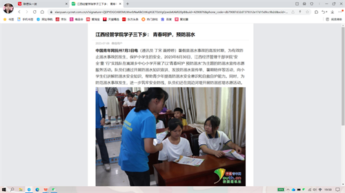 中国青年网:江西经管学院学子三下乡:青春呵护,预防溺水