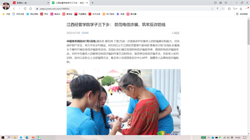 中国青年网:江西经管学院学子三下乡:防电信诈骗,筑牢反诈防线