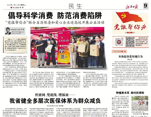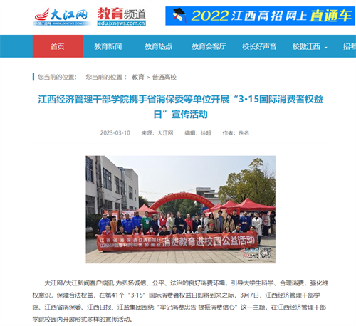 近日,多家媒体报道学校携手省消保委等单位开展“3·15国际消费者权益日”宣传活动,详情如下: