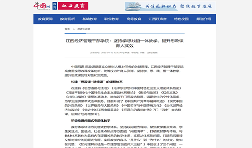 近日,中国网报道,学校坚持学思践悟一体教学,提升思政课的针对性和实效性。详情如下: