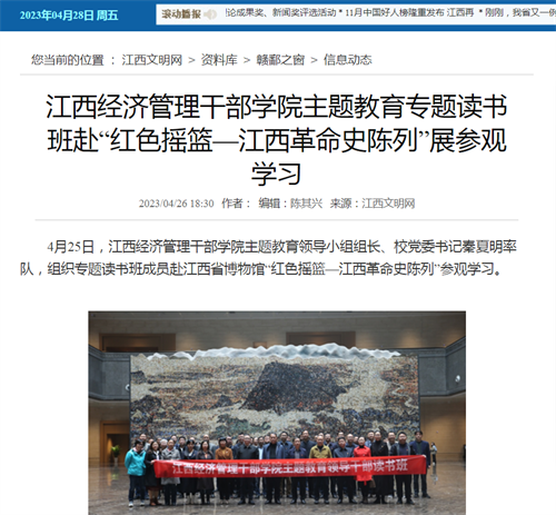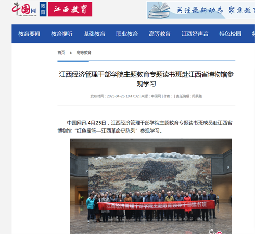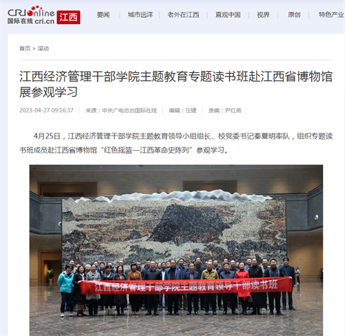 近日,多家媒体报道,学校主题教育专题读书班赴江西省博物馆展参观学习,详情如下: