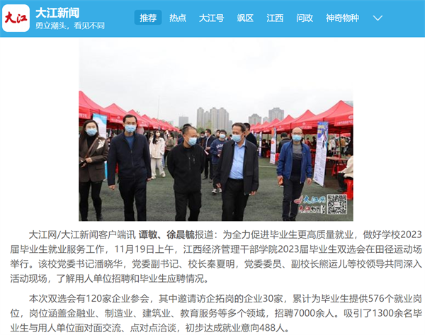 11月19日上午,学校2023届毕业生双选会在田径运动场举行。校党委书记潘晓华,党委副书记、校长秦夏明,党委委员、副校长熊运儿等校领导共同深入活动现场,了解用人单位招聘和毕业生应聘情况。详情如下: