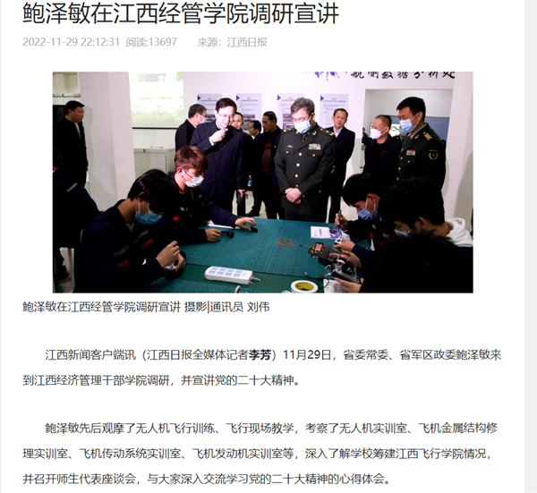11月29日,省委常委、省军区政委鲍泽敏来到我校调研,并宣讲党的二十大精神。详情如下: