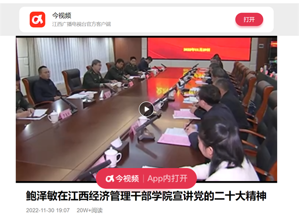 近日,江西广播电视台报道,鲍泽敏在我校宣讲党的二十大精神,详情如下: