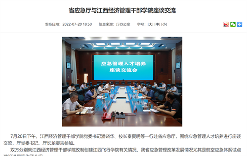 省应急管理厅报道,7月20日下午,我校党委书记潘晓华、校长秦夏明等一行赴省应急厅,围绕应急管理人才培养进行座谈交流,厅党委书记、厅长龙卿吉参加。详情如下: