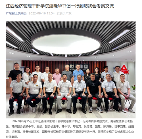 8月15日上午,学校党委书记潘晓华一行到广东省上饶商会考察交流。详情如下:
