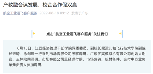 8月15日,学校党委委员、副校长熊运儿和飞行技术学院副院长宋琦、徐剑锋一行来到中航通用飞机有限公司考察调研。详情如下: https://mp.weixin.qq.com/s/E8JEjGs96556QyX4x66sIg
