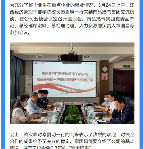 近日,南昌市燃气集团报道校长秦夏明一行赴集团交流访谈,详情如下: