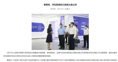 近日,南昌市科技局报道秦夏明、李松殿调研江西博士鑫公司,详情如下: