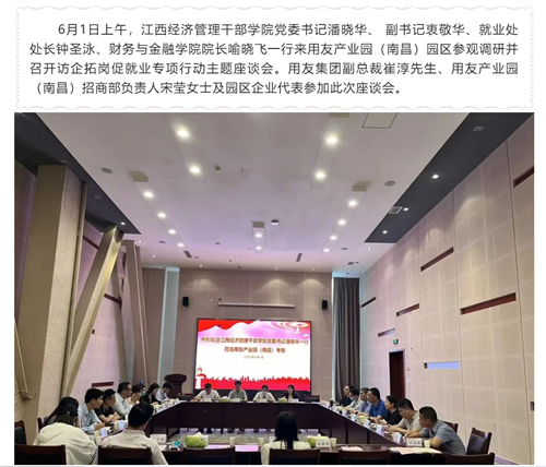 近日,用友南昌产业园报道学校党委书记潘晓华一行来园区参观调研,详情如下: