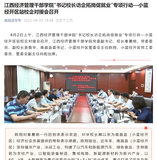 近日,南昌县发布报道,学校“书记校长访企拓岗促就业”专项行动—小蓝经开区站校企对接会召开,详情如下: