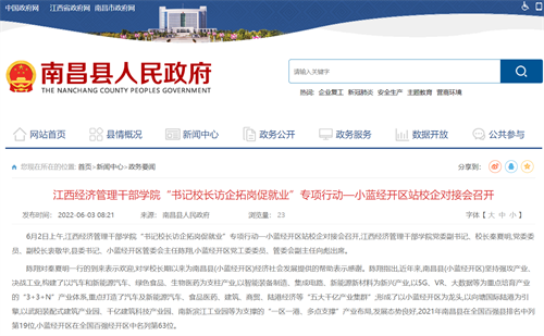 近日,南昌县人民政府报道:我校“书记校长访企拓岗促就业”专项行动—小蓝经开区站校企对接会召开,详情如下: