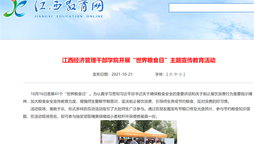 近日,多家媒体报道学院开展“世界粮食日”主题宣传教育活动,详情如下: