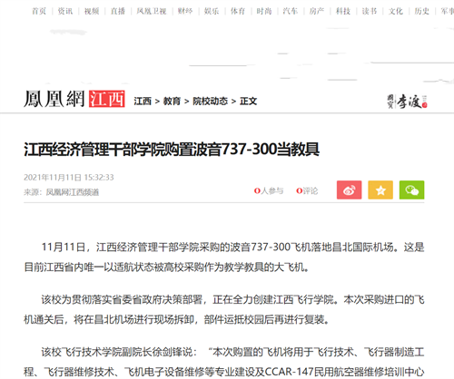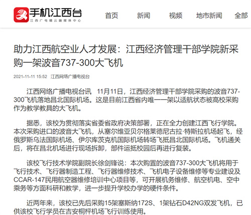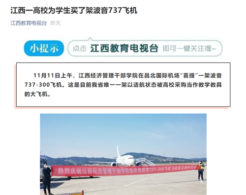 近日,多家媒体报道学院新采购一架波音737-300大飞机,详情如下: