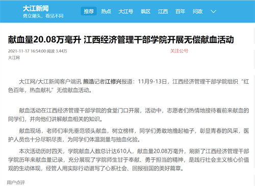 多家媒体报道学院组织开展“红色百年,热血献礼”无偿献血活动,详情如下: