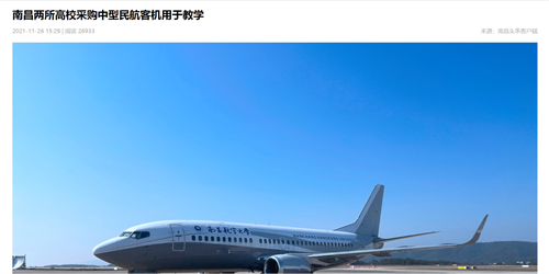 学习强国平台报道,学院采购中型民航客机用于教学,详情如下: