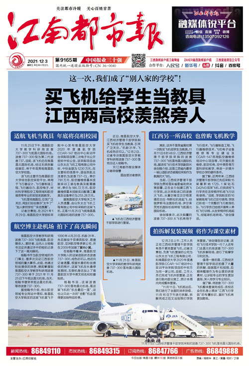 今日《江南都市报》报道,学院购买飞机给学生当教具,引发广泛关注。详情如下: