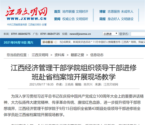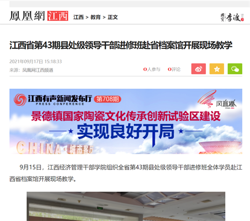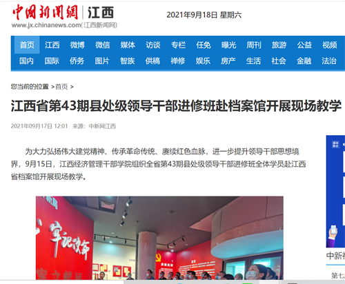 近日,多家媒体报道,学院于9月15日组织全省第43期县处级领导干部进修班全体学员赴江西省档案馆开展现场教学,详情如下: