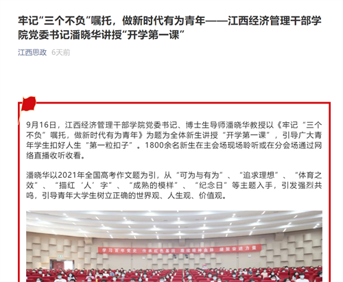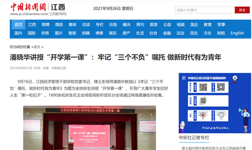 近日,多家媒体报道学院党委书记潘晓华为新生讲授“开学第一课”,详情如下: