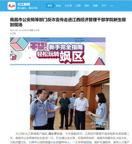近日,外媒报道学院联合南昌市公安局等部门开展反诈宣传进校园活动,详情如下: